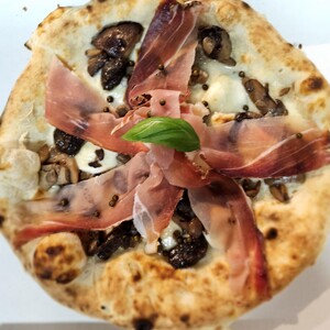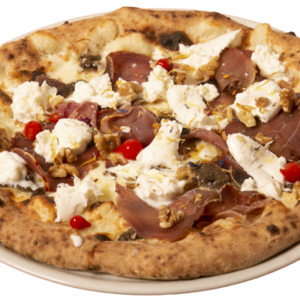 mozzarella di bufala, pepe verde, burattina alla stracciatella, speck Igp, funghi porcini trifolati e crema al tartufo