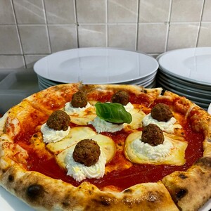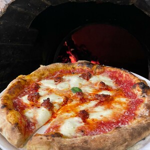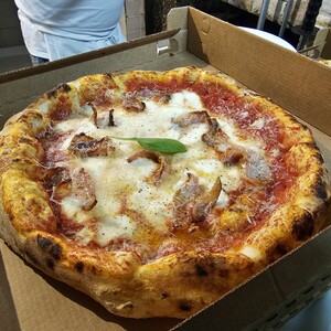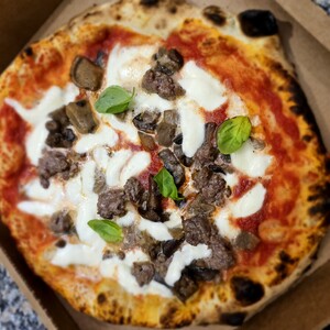 Pomodoro, mozzarella fiordilatte, salsiccia sbriciolata, crema di tartufo, funghi misti e porcini trifolati.